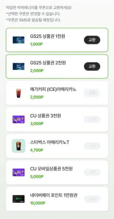 변경 : 포인트가 모이면 포인트 상점에서 즉시 교환권 신청 가능