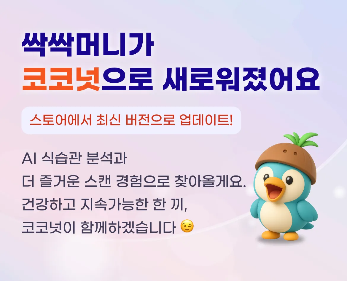 ‘코코넛’은 건강하고 지속가능한 한 끼를 즐겁게 만드는 AI 가이드로 함께 하겠습니다.
